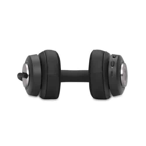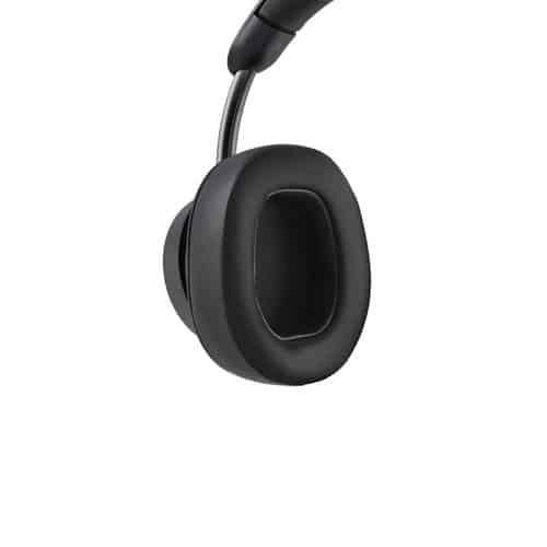 • Over-ear design with cooling-gel infused memory foam earpads covered in breathable heat transferring fabric, adjustable leatherette headband, a rotating microphone (up to 270°) that can be worn on the right or left side, and rotating joints that allow the earcups to swivel up to 90° for a comfortable, secure fit.